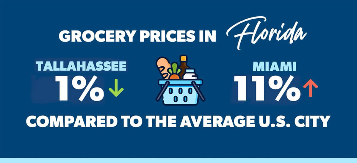 Grab your grocery cart—we’re headed to Publix! This popular Southeastern supermarket chain was founded and is headquartered in Florida, so there’s a good chance you’ll buy some oranges and key lime pies there if you move to the sunny state. Groceries in Florida range from just below the national average in Tallahassee to 11% higher in Miami.